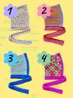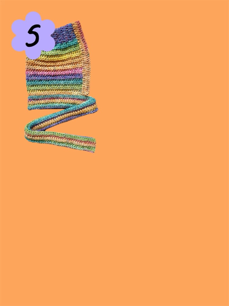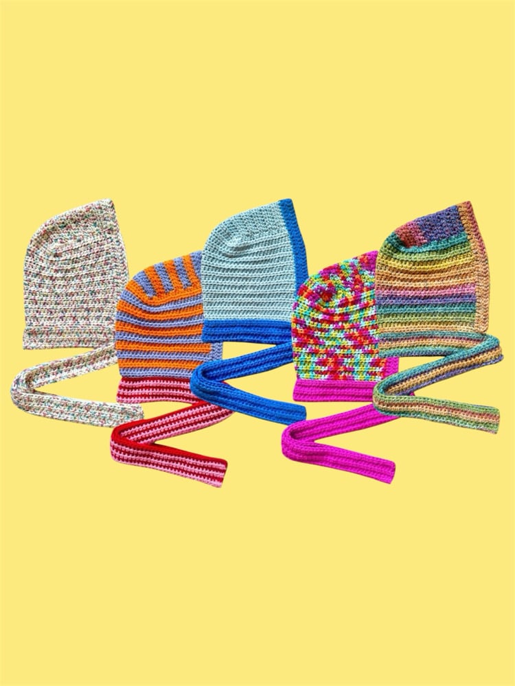 Hand crocheted hood with neck ties made to fit most head sizes. Made with acrylic yarn. Machine washable, dray flat.