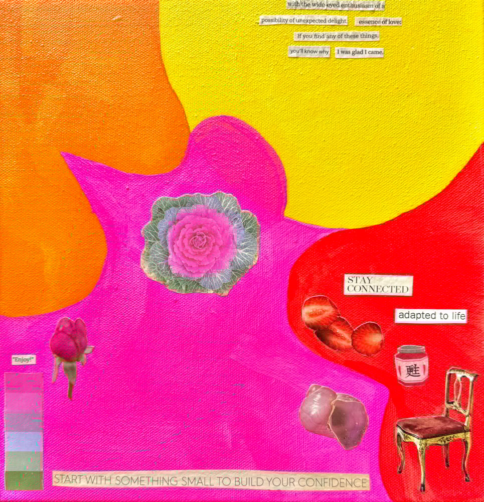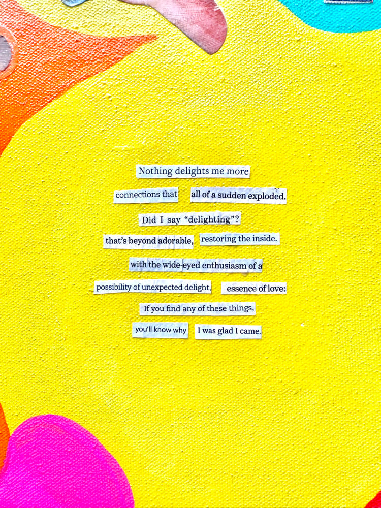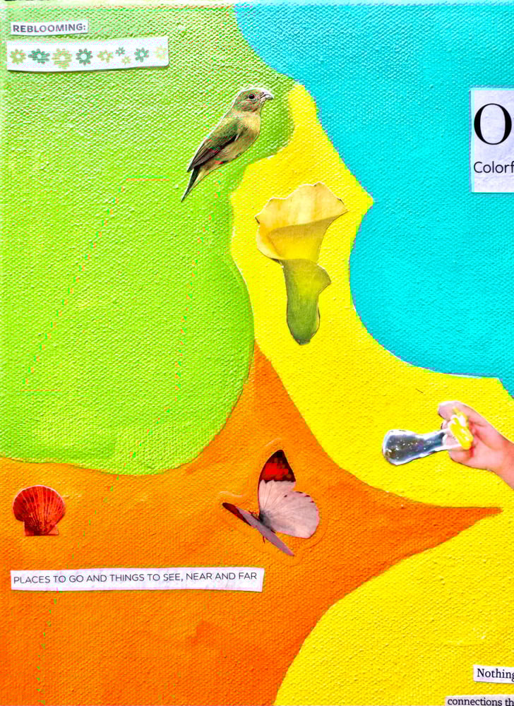 10x20 inch analog collage. Made with acrylic paint and paper on canvas.