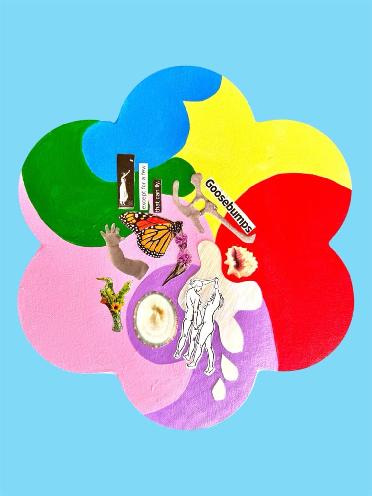 11x12 inch analog collage. Made with acrylic paint and paper on canvas.